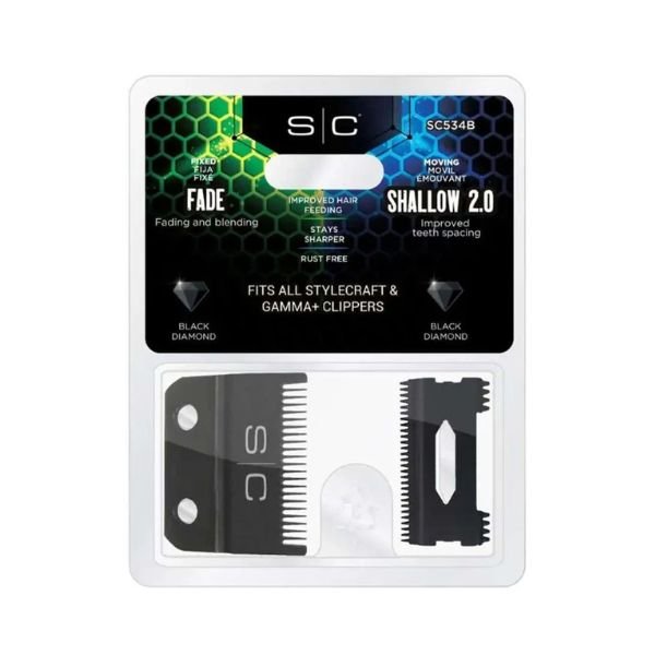 Il Blade Set Fade DLC + Shallow DLC di Stylecraft è il kit di lame professionali per ampliare le possibilità di taglio della propria macchina. Le lame in Black Diamond Carbon garantiscono alta scorrevolezza, resistenza all’usura e un profilo di taglio preciso per il fade professionale.